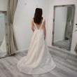 The Chastity wedding gown is made for the bride who wants a stunning statement. This plunging V neckline wedding dress Melbourne blends classic A-line elegance with bold design. Featuring an illusion insert, delicate beaded straps beneath the bust, and luxurious satin with crystal accents — Chastity is where style meets sophistication.