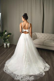 The Holly doesn't just offer beauty; it promises comfort. The supportive bodice frames the waist, transitioning into a keyhole back, seamlessly fusing classic and modern designs. As you drift down the aisle, the soft tulle skirt adorned with lace embellishments will capture every gaze, with the hemline being a particular highlight.