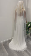 Make an unforgettable entrance with the 2-meter Pearl Elegance Cathedral Veil, designed for brides who adore soft romance with a touch of luxury. Flowing beautifully in lightweight soft tulle, this veil is adorned with delicately scattered 0.6mm pearls, each hand-clipped with a silver backing for a polished, light-catching finish.