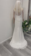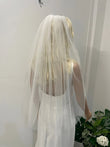 This veil is completely unembellished, allowing your dress — and you — to shine. It’s the perfect finishing touch for brides seeking elegance without excess.