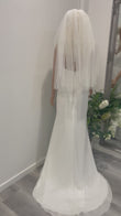 The Soft Whisper Veil is a minimalist bride’s dream — pure, flowing, and timeless. At 75cm, this short veil grazes the shoulders, making it ideal for civil ceremonies, elopements, or casual weddings. Crafted from sheer, lightweight soft tulle, it floats gracefully without competing with your gown.
